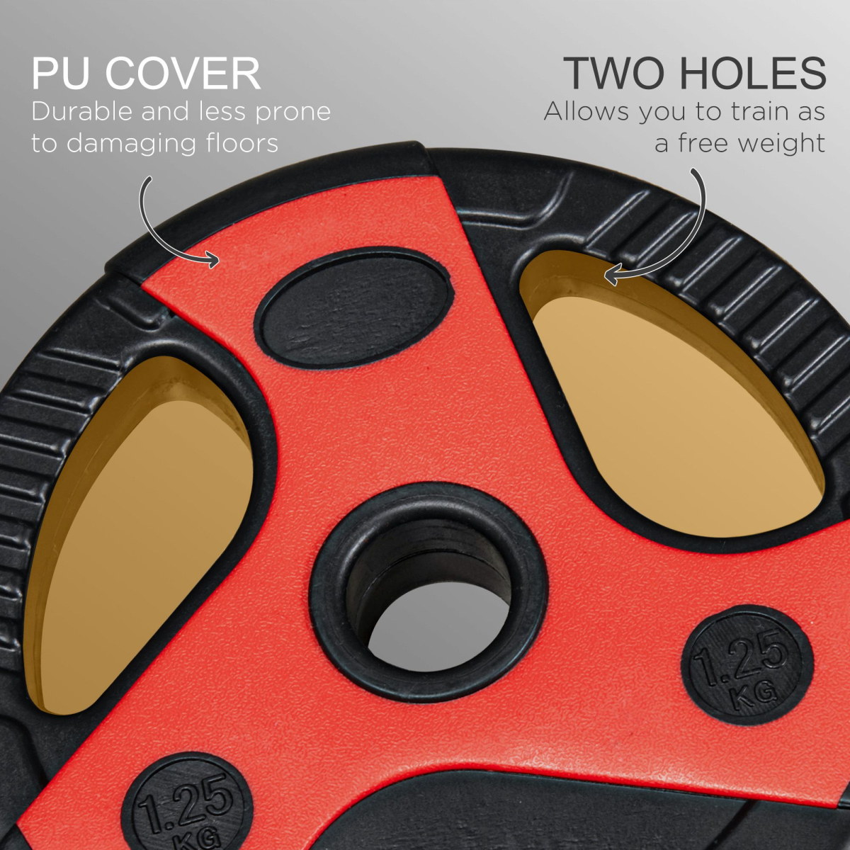 – 20kg weight in total; – PU coating for protection, avoiding damage floor; – Non-slip grip to prevent slipping when exercising; – End fixings included holding weight in place on the bar; – Used to condition and shape arms, shoulders and back; – Easy to assemble; – Colour: Black and Red; – Material: Metal, PU, Sand; – Overall Dimensions: Փ27 x 140Lcm; – 5kg Plate Size: Փ27 x 6Dcm; – 2.5kg Plate Size: Փ24 x 4.5Dcm; – 1.25kg Plate Size: Փ20 x 3.5Dcm; – Barbell Bar Size: Ф3 x 140Lcm (only fits Փ2.5cm plates); – Barbell Bar Weight Capacity: 50kg; – Item Label: A91-259V00BK;